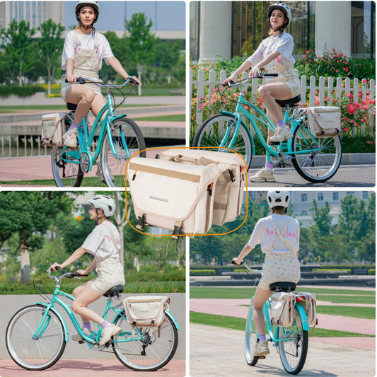 Lilypelle 11Gal 900D Waterproof Cycling Bicycle Saddle Bag ,Bike Storage Pouch,Rear Rack Seat Trunk,Black/Beige
