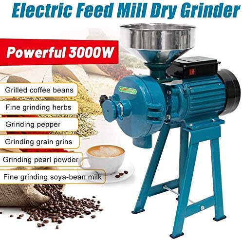 Grain Mills, Upgraded 3000W Wet Dry Cereals Grinder Electric Grain Grinder Corn Mill Heavy Duty 110V Commercial Grain Grinder Machine Rice Corn Grain Coffee Wheat Feed Mill Flour Mill with Funnel