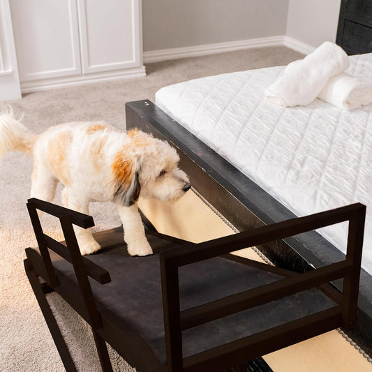 Dog Ramp for Bed, Adjustable Pet Ramps for Dog to Get on Bed, Non-Slip Rubber Surface - Folding Wooden Dog Ramp for Small/Large/Old Dogs