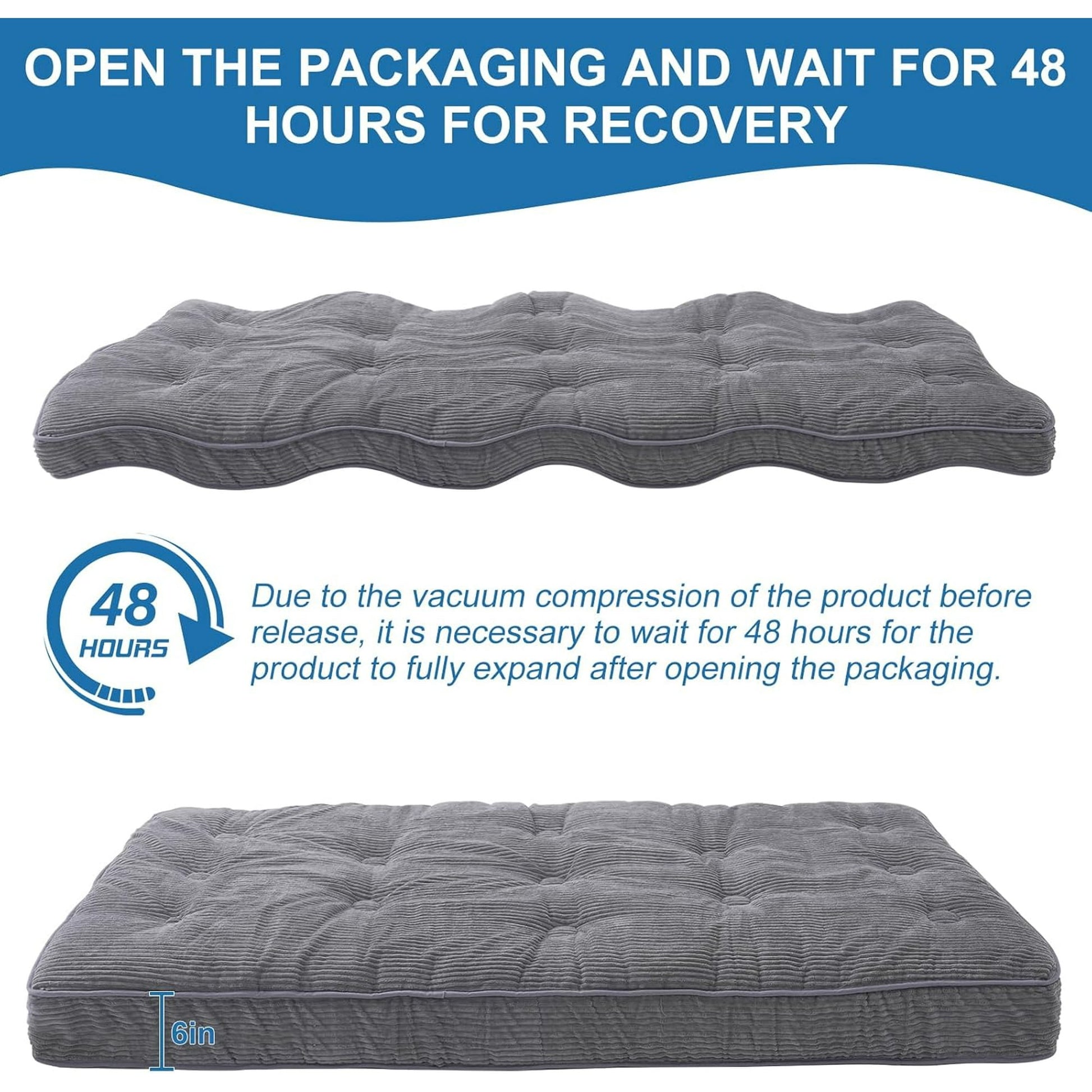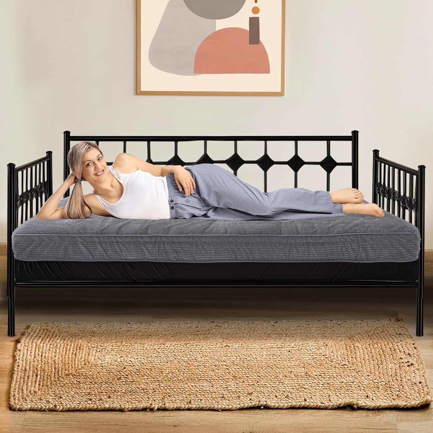 Lilypelle 6 Inches Daybed Mattress Memory Foam Futon Mattress Twin Size, Thick Corduroy Futons Sofa Couch Bed, Foldable Floor Mattress for Adults (Frame Not Included), Grey