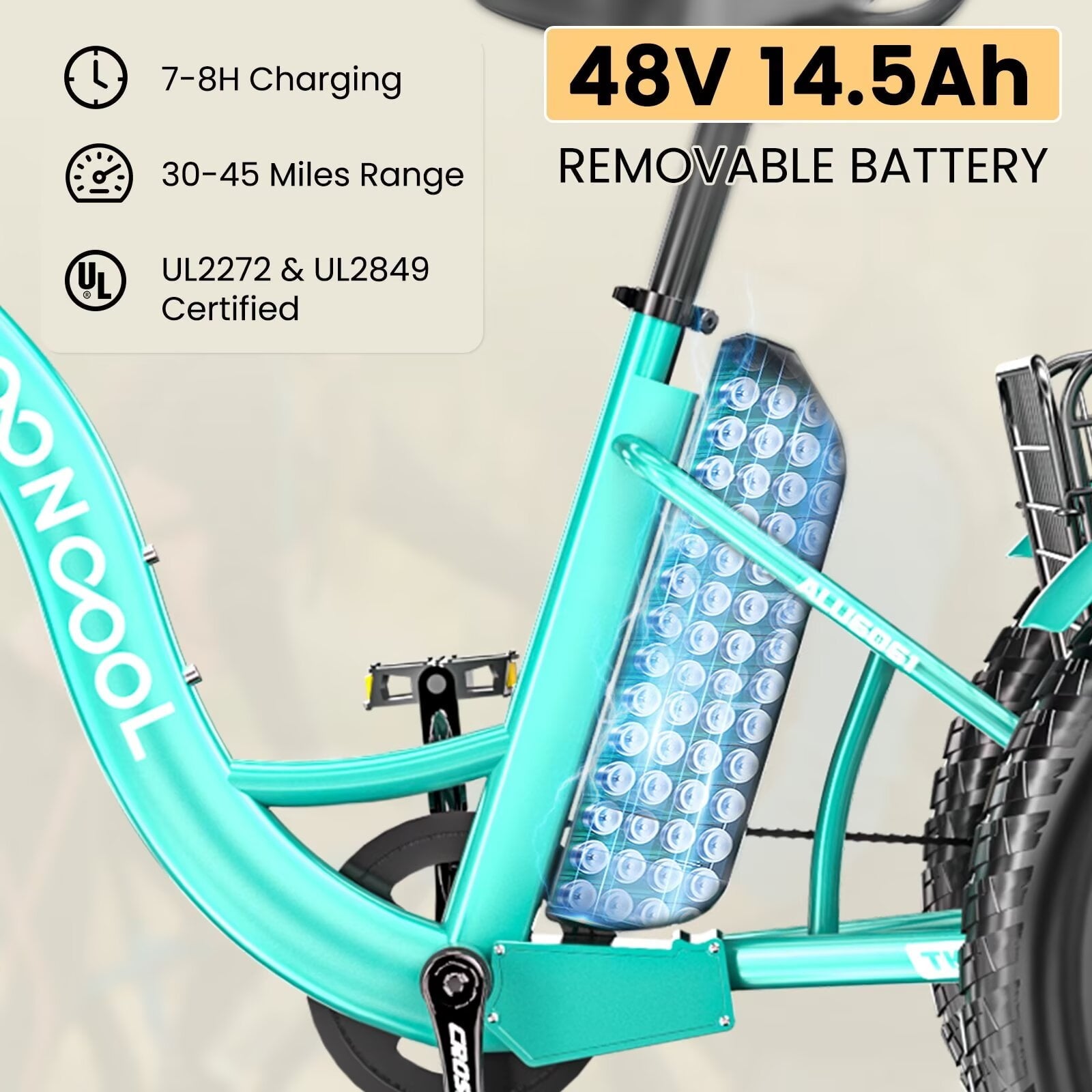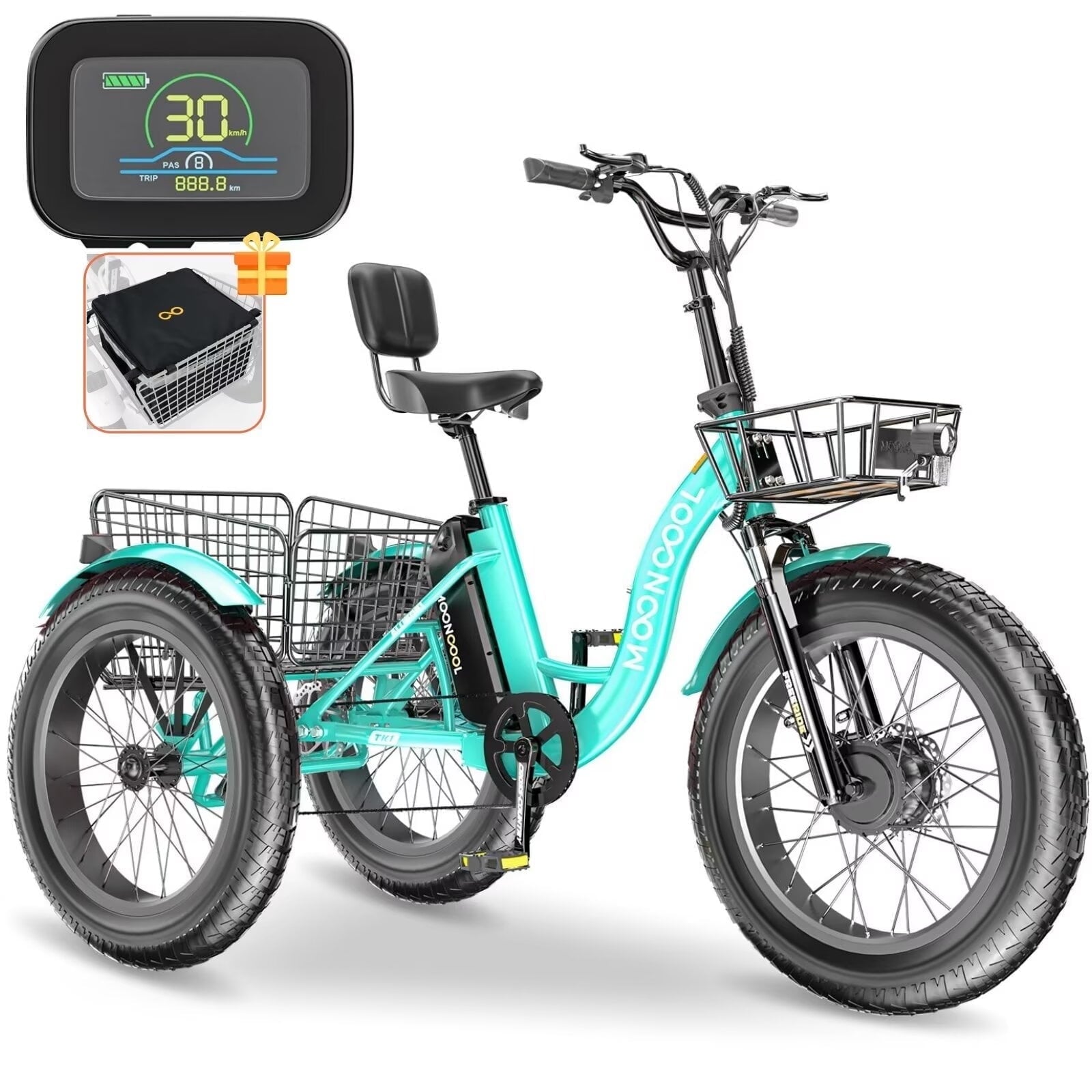 【500W ELECTRIC MOTOR】The electric trike is equipped with a 48V 500W motor and a peak torque of 85NM. Provide you with an upgraded cycling experience. This not only improves speed and torque, but also eliminates any concerns of startup slippage, providing excellent traction on slippery roads.