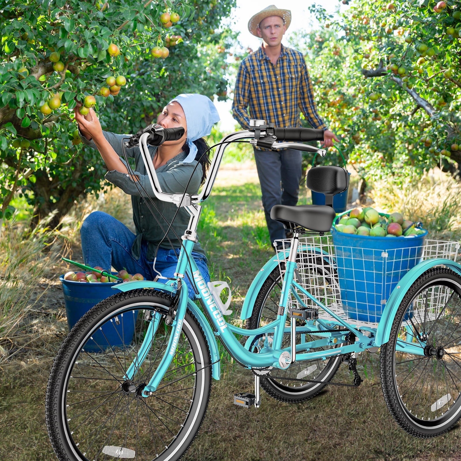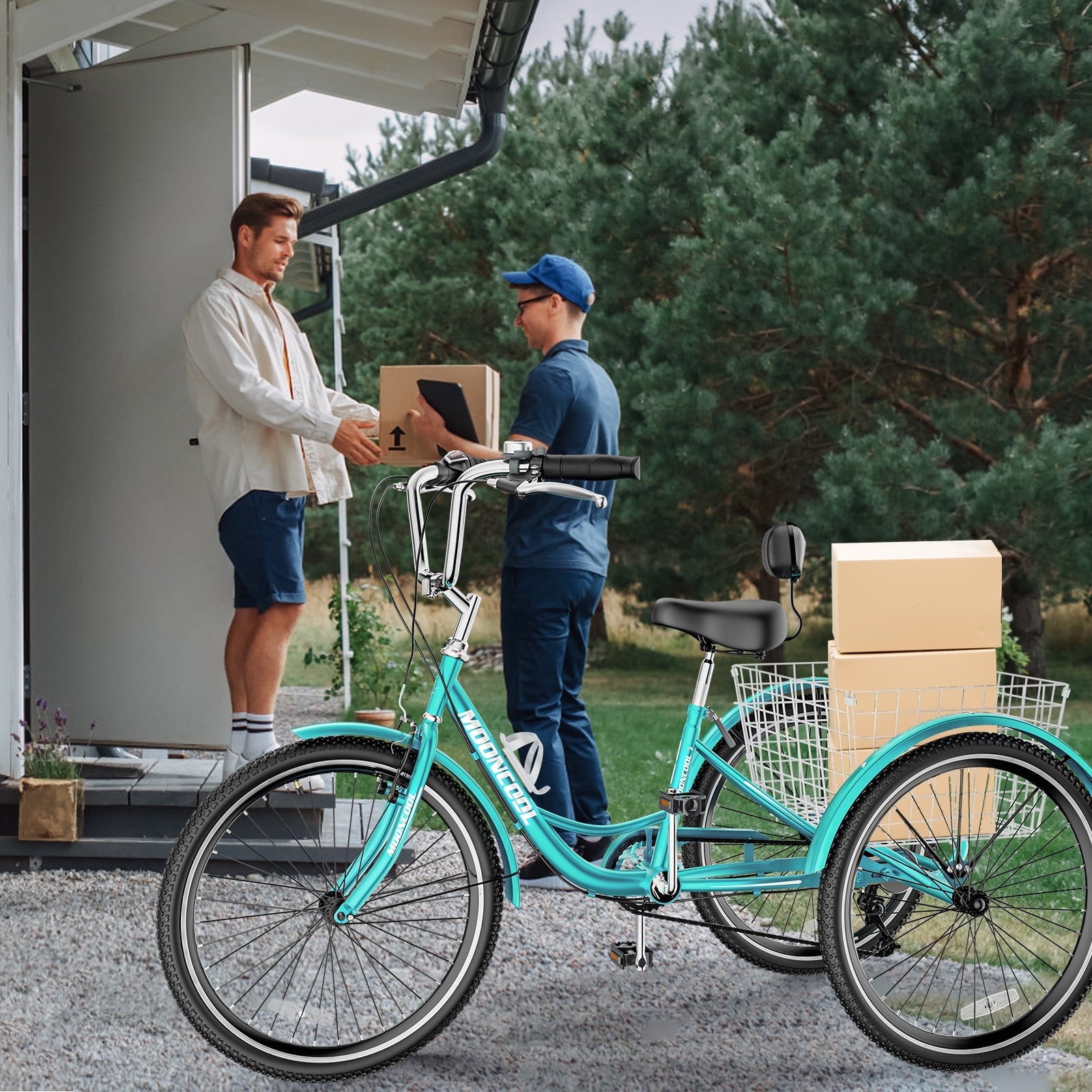 Lilypelle Adult Tricycles 7-Speed 20/24/26 in Three Wheel Unisex Adult Bike with Large Basket,Cyan