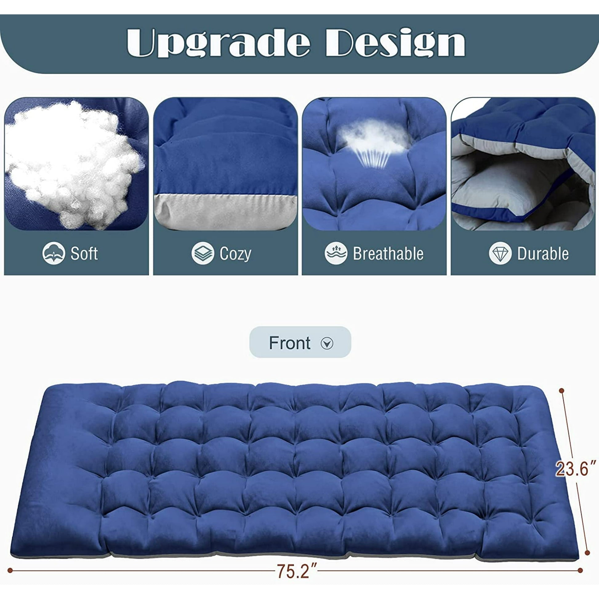 2 SIDED COMFORTABLE MATTRESS: Equipped with 2 Sided Mattress, you can sleep more comfortably in this portable folding camping bed. In hot weather, the cushion can also be taken away for the breathable. 3.3 inch thickened pearl cotton pad (keep warm in autumn and winter).