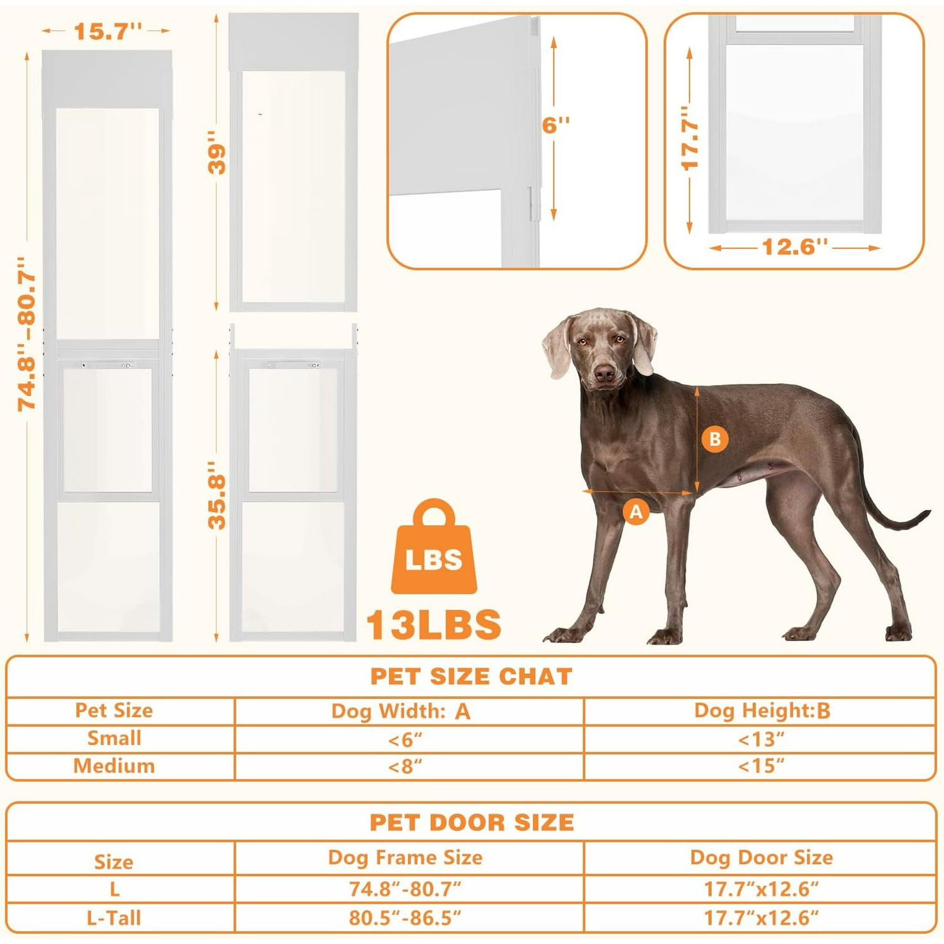 Lilypelle Dog Door for Sliding Glass Door, 74.8''-80.7'' Adjustable Sliding Glass Door for Small Dog & Cat Door