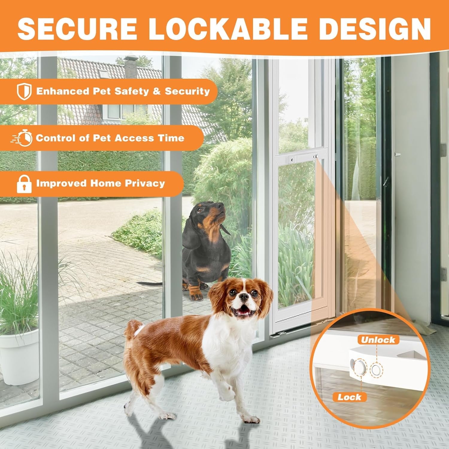 Durable Aluminum Frame: Built with a robust aluminum frame and clear acrylic glass, this dog door offers exceptional durability and weather resistance. The transparent glass allows your pet to see outside while withstanding the elements, making it ideal for both indoor and outdoor use