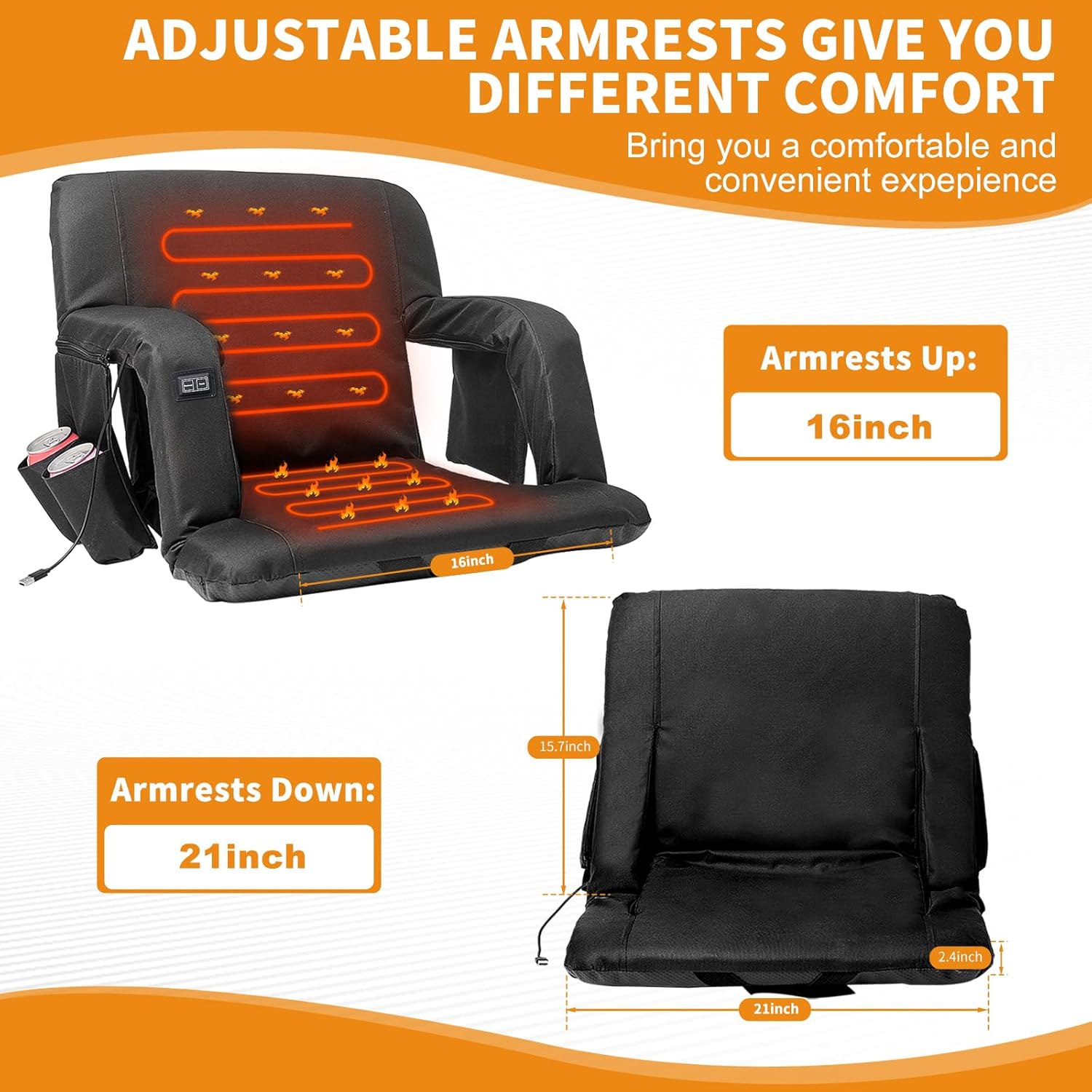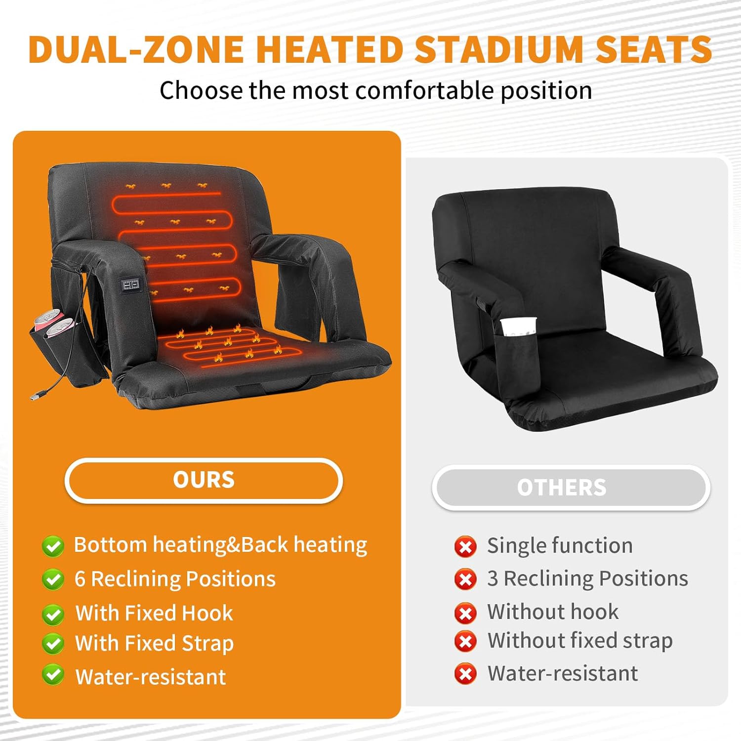 LILYPELLE Double Heated Stadium Seat Bleacher Seat with Back & Arm Support, Portable 6 Reclinng Positions Stadium Seating for Bleachers, Bleacher Seats for Sports Events, Outing, Travelling, Hiking