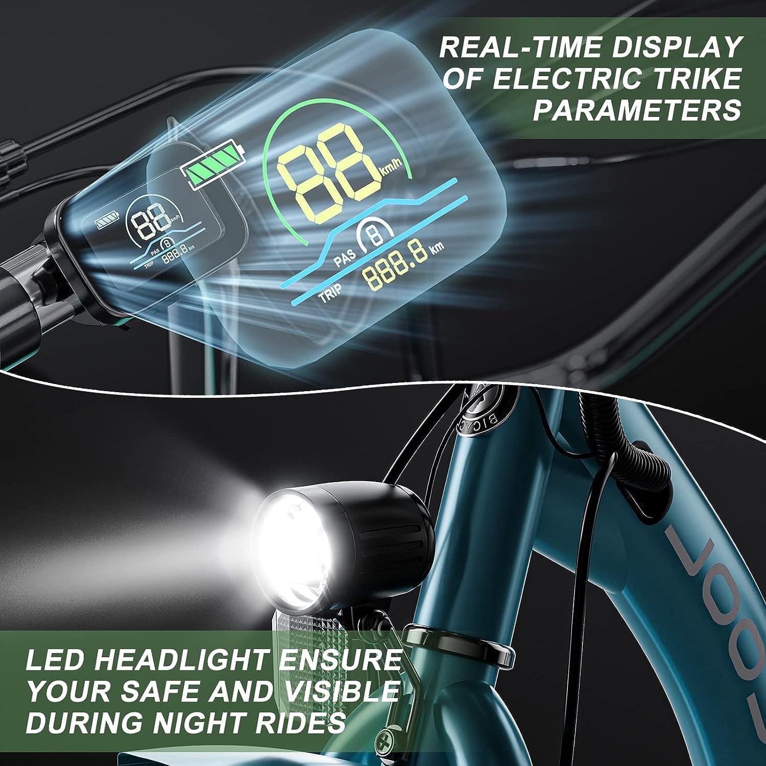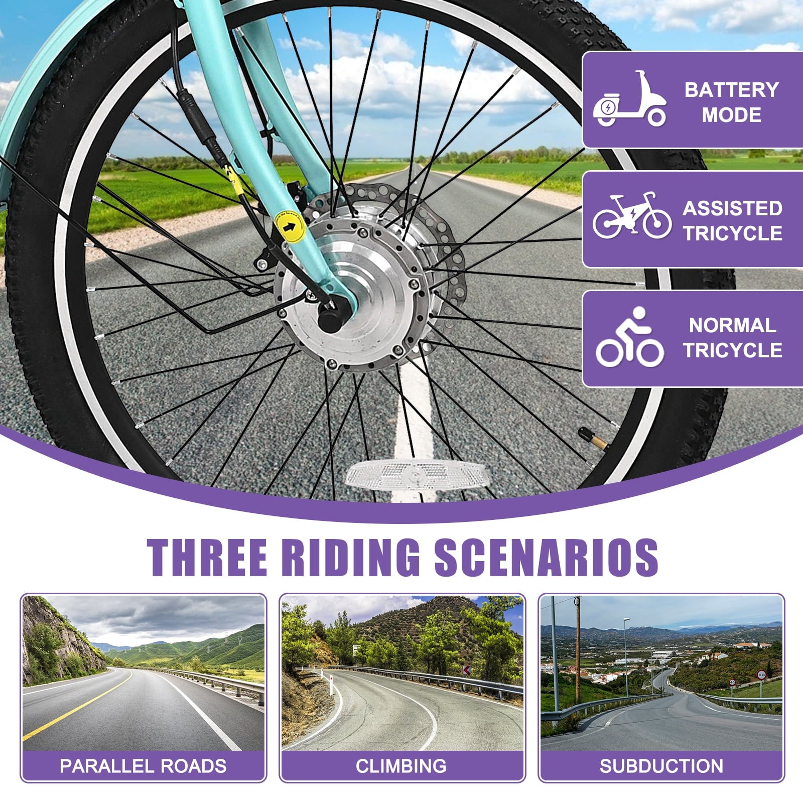 Double Rim and Disc Brakes Options: Our electric tricycle with 2 disc brakes, which provide crisp stopping and steady speed control on descents. Upgraded double rim provide a more stable ride