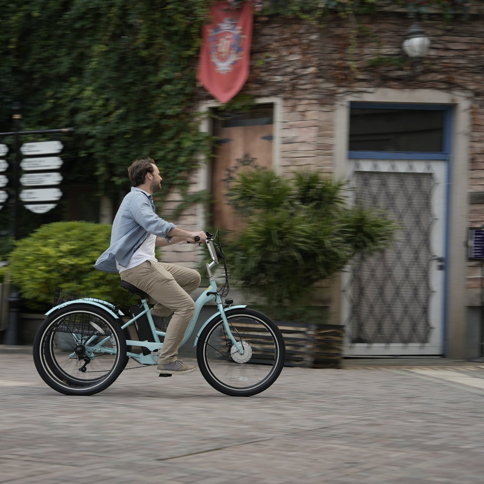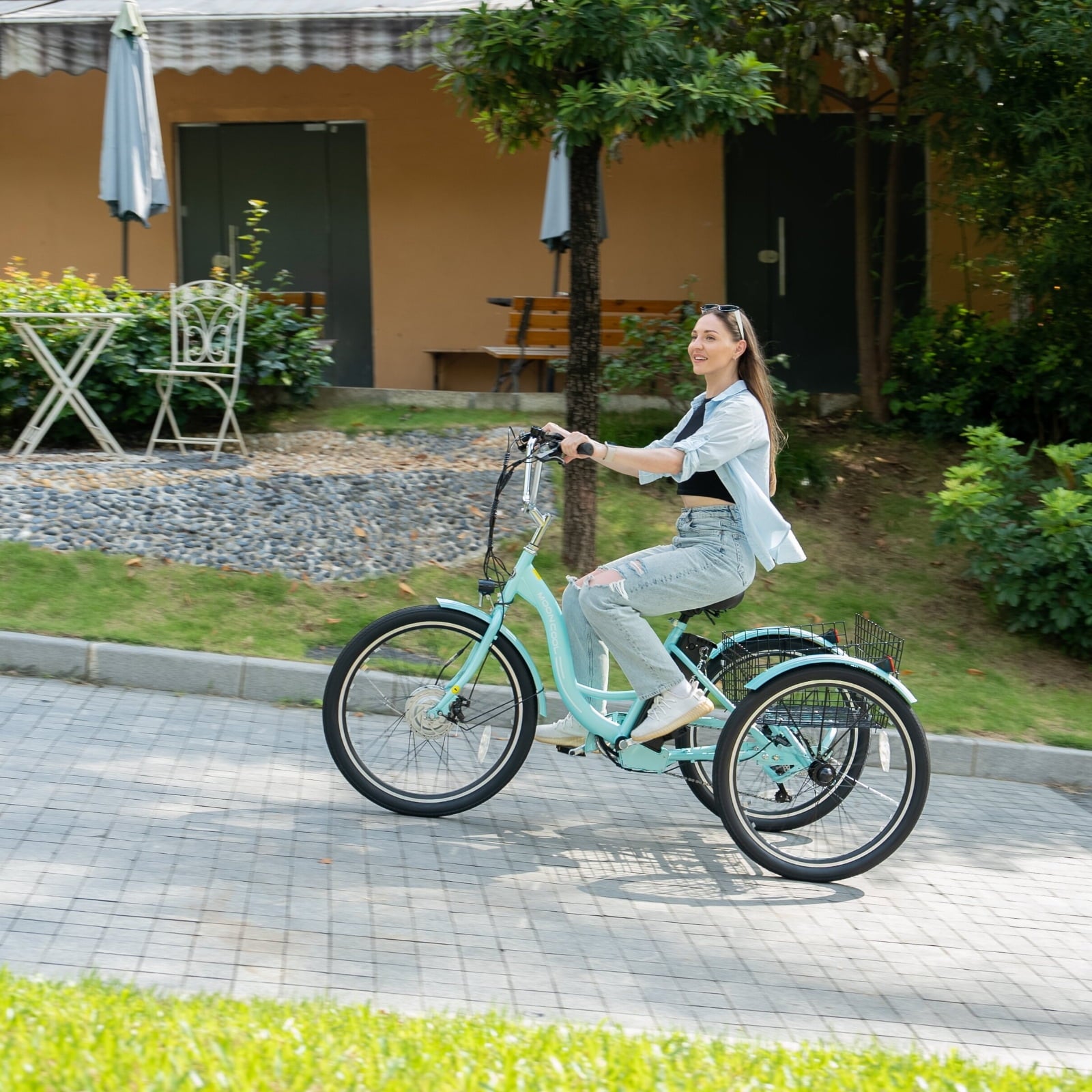 Lilypelle Electric Tricycle for Adults, 350W 36V Electric Trike Motorized Three Wheel Electric Bicycle, 7 Speeds 3 Wheels Adult Electric Tricycle with Large Basket,Cyan