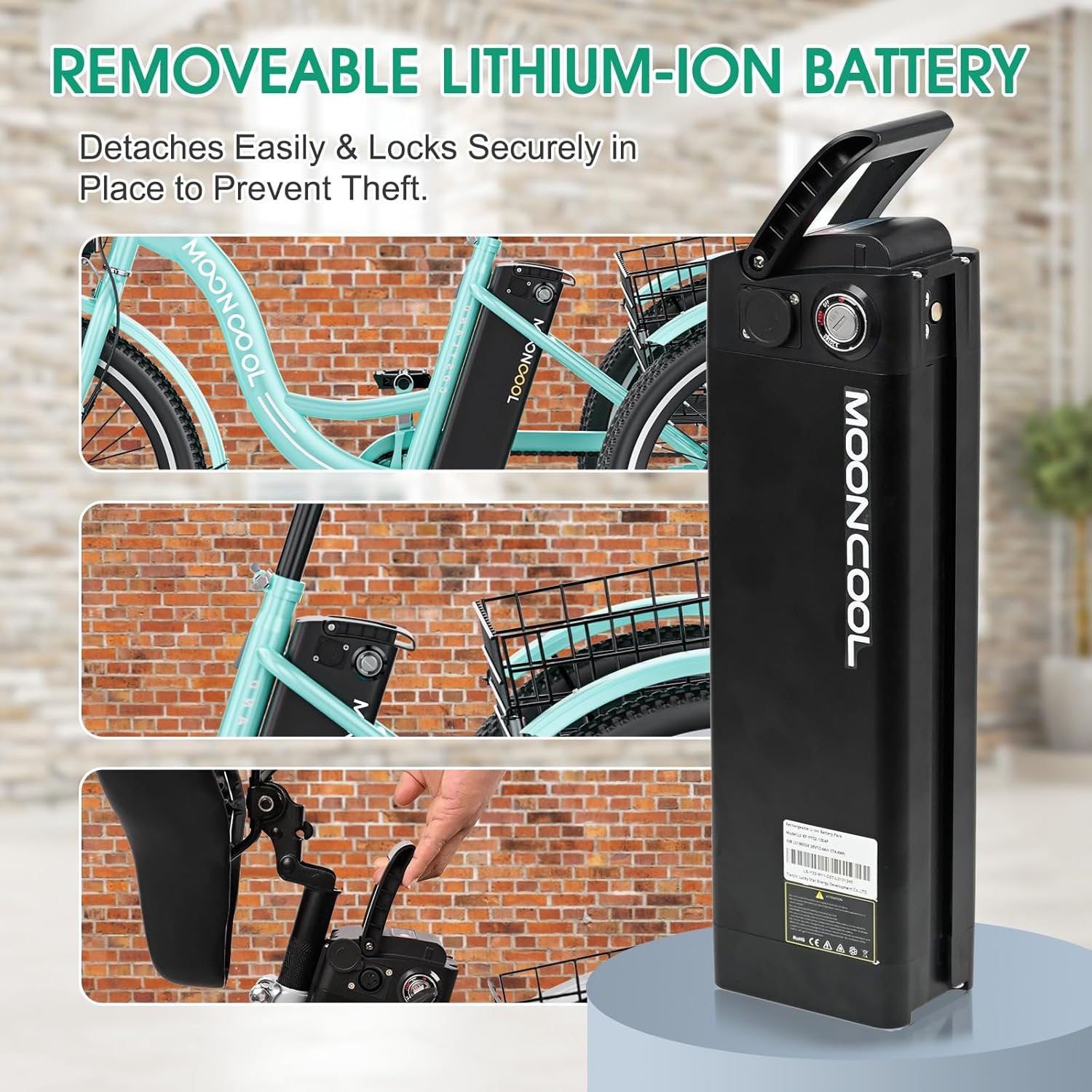 350W Motor and 7-Speed Rear Derailleur: 350W drive motor provides reliable support and 15.5 mph top speed. Comes with a removable 36V/10.4AH battery covering a range of 30 miles per full charge.We also offer 14.5ah lithium batteries for your choice.