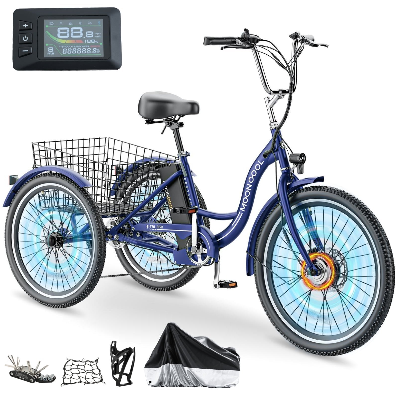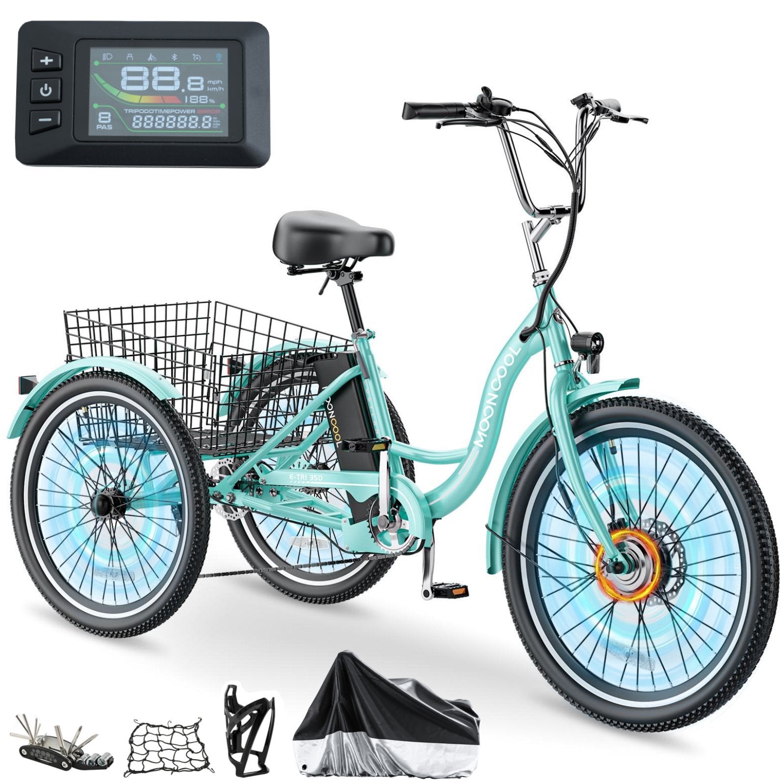 Large Basket & Led Headlight: Etrike has a large rear basket, load up the convenient basket with groceries, supplies, or whatever suits your daily shopping while staying in shape.