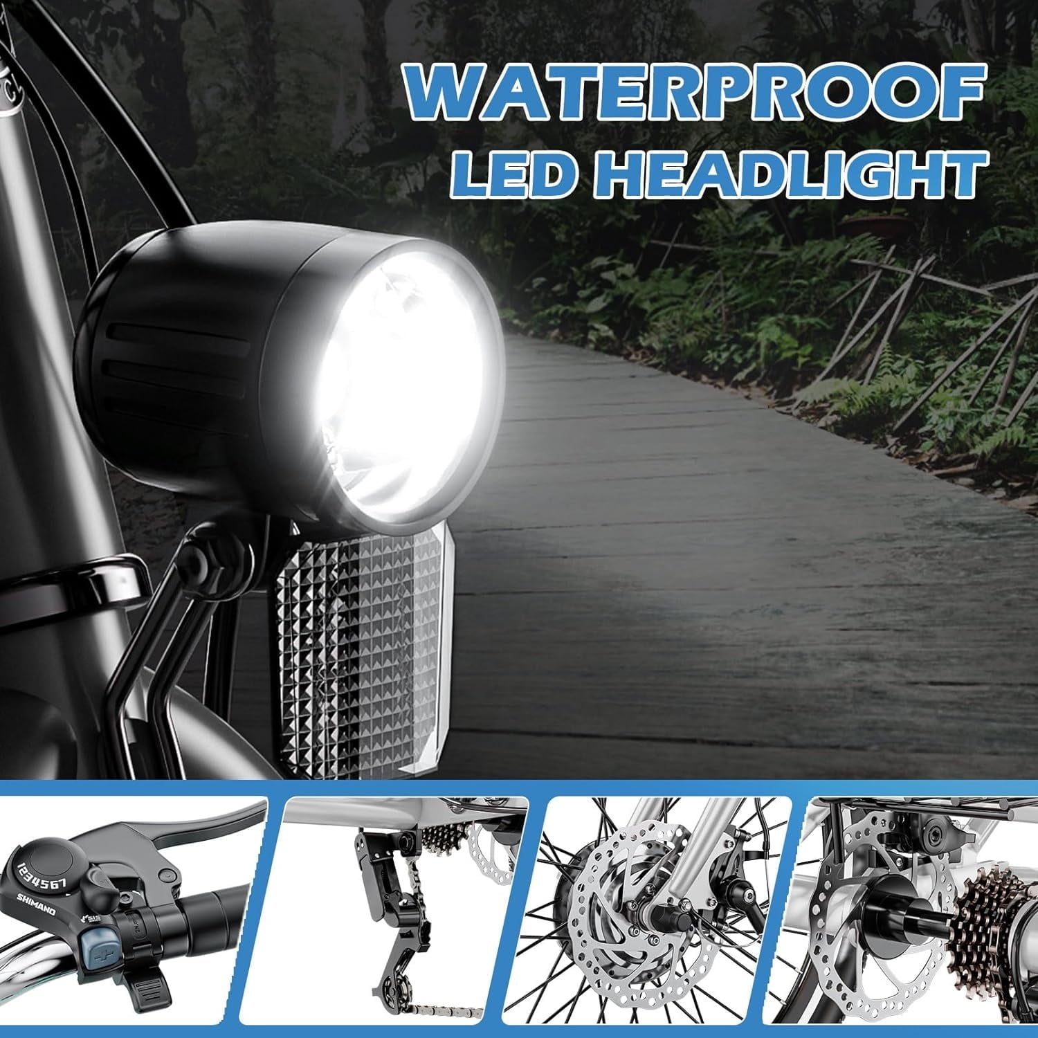 Large Basket & Led Headlight: Etrike has a large rear basket, load up the convenient basket with groceries, supplies, or whatever suits your daily shopping while staying in shape.