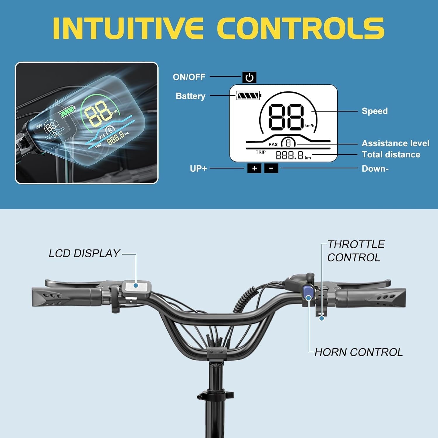 Versatile Modes:Discover the versatility of our adult e trike, offering three modes: etrike, assisted tricycle, and normal tricycle. Easily adjust the electric assist level via the LCD display to suit your needs, making it ideal for daily commutes and short trips. Powered by a 48V/14.5Ah removable lithium battery, our electric bike for adults charges fully in just 7-8 hours