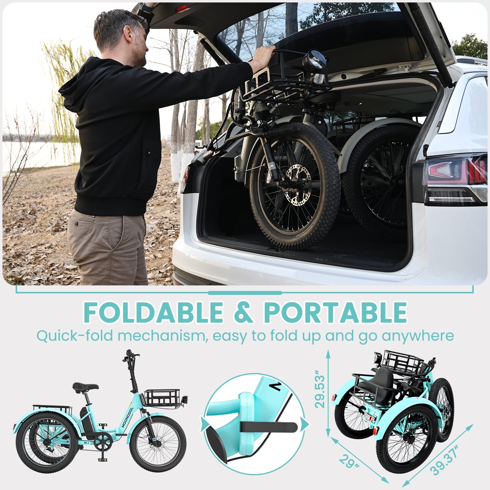 Durable Aluminum Frame: Built to last, the folding electric tricycle is featured with the 6061 aluminum bike frame, ensures strength and longevity, providing a sturdy foundation for your rides
