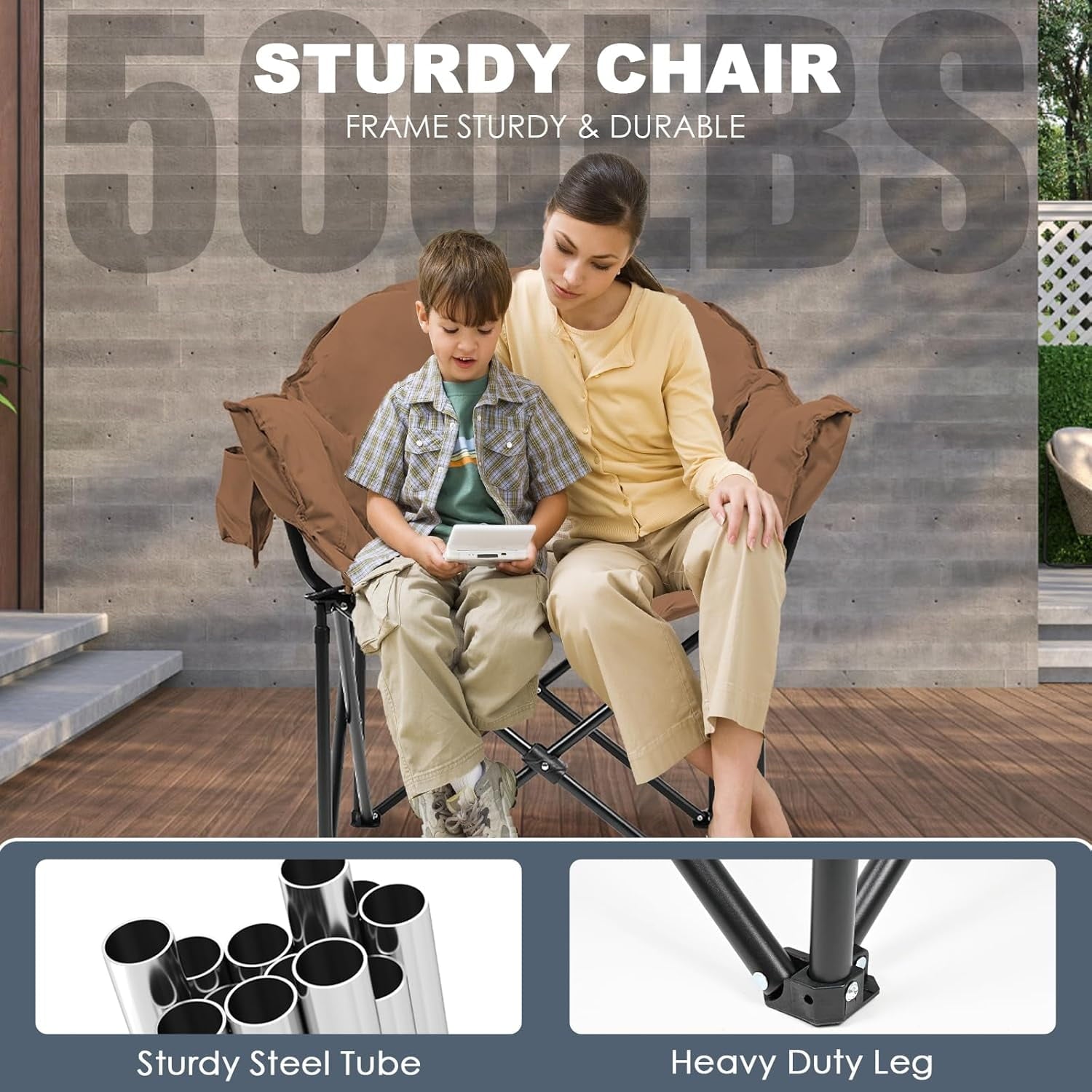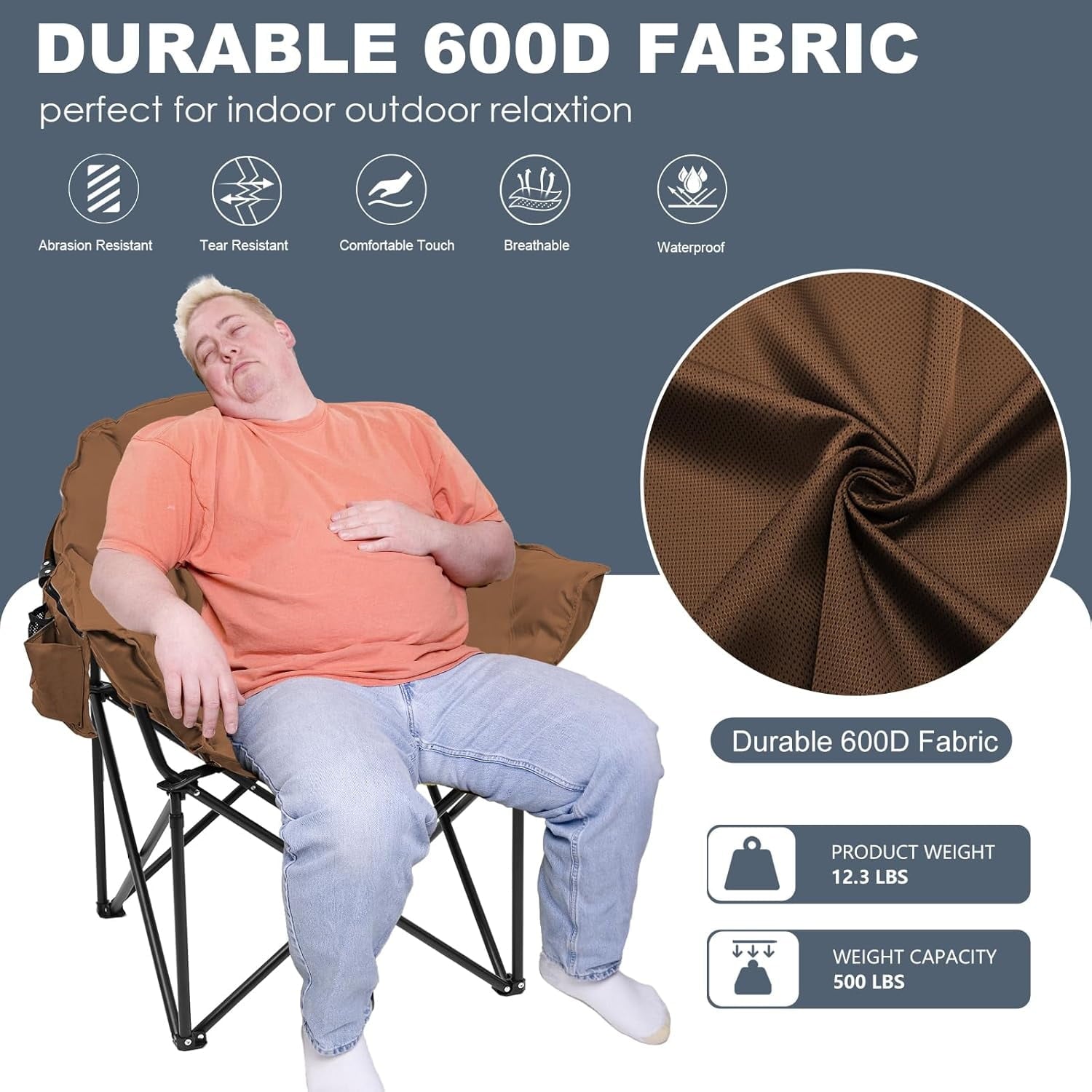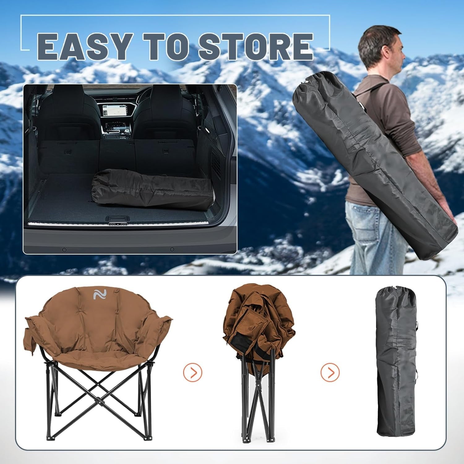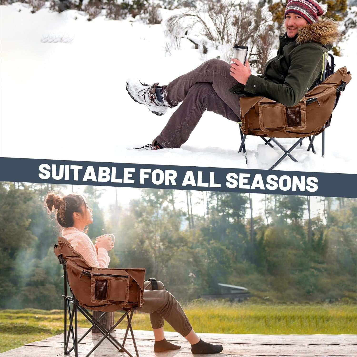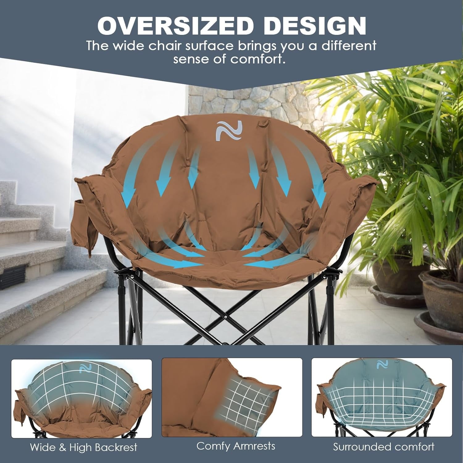 LILYPELLE Oversized Heated Camping Chair, Patio Lounge Chairs with 3 Heat Levels, Portable Folding Heated Chair Round Moon Saucer Folding Lawn Chair Outdoor Chair for Camping, Lounge Patio