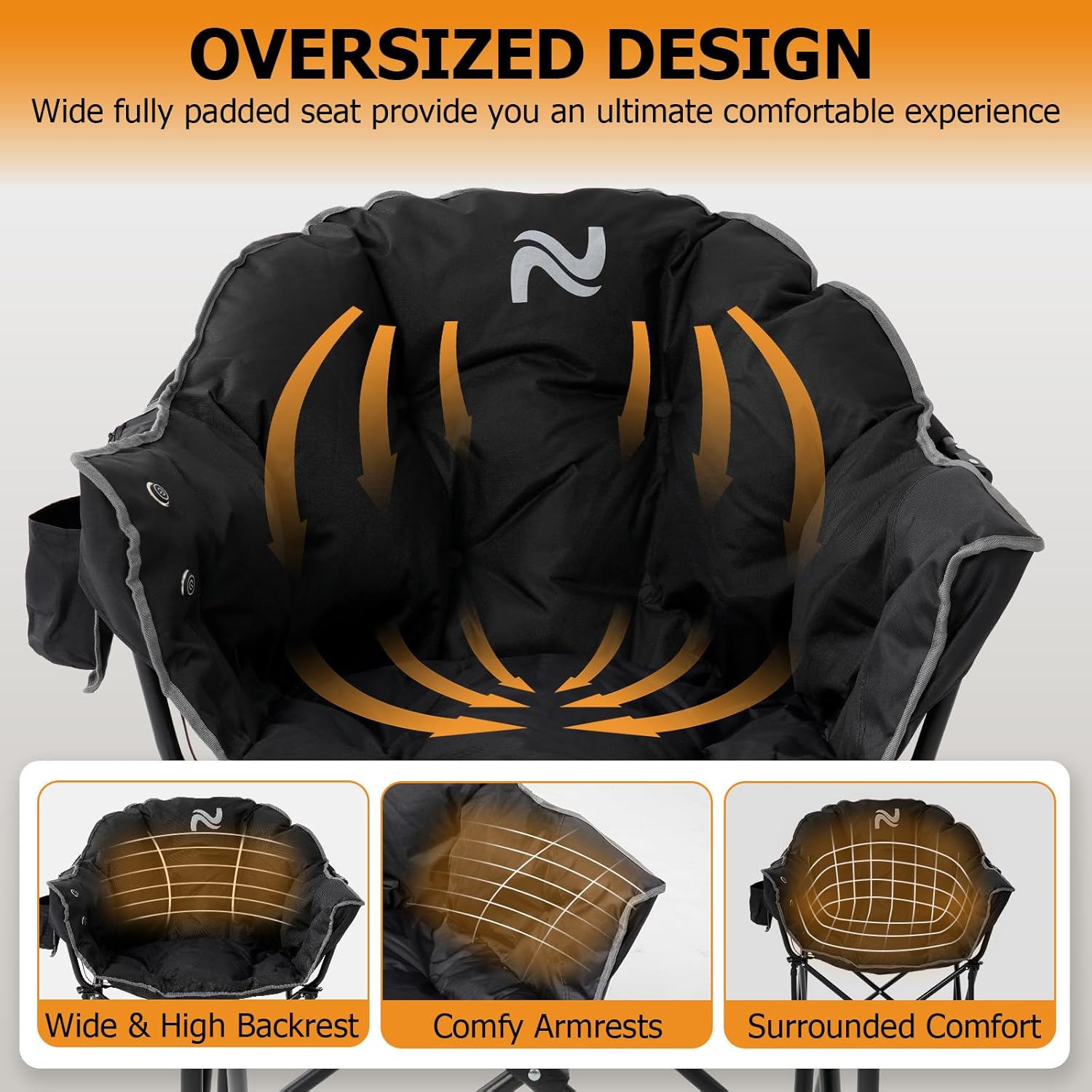 LILYPELLE Oversized Heated Camping Chair, Patio Lounge Chairs with 3 Heat Levels, Portable Folding Heated Chair Round Moon Saucer Folding Lawn Chair Outdoor Chair for Camping, Lounge Patio