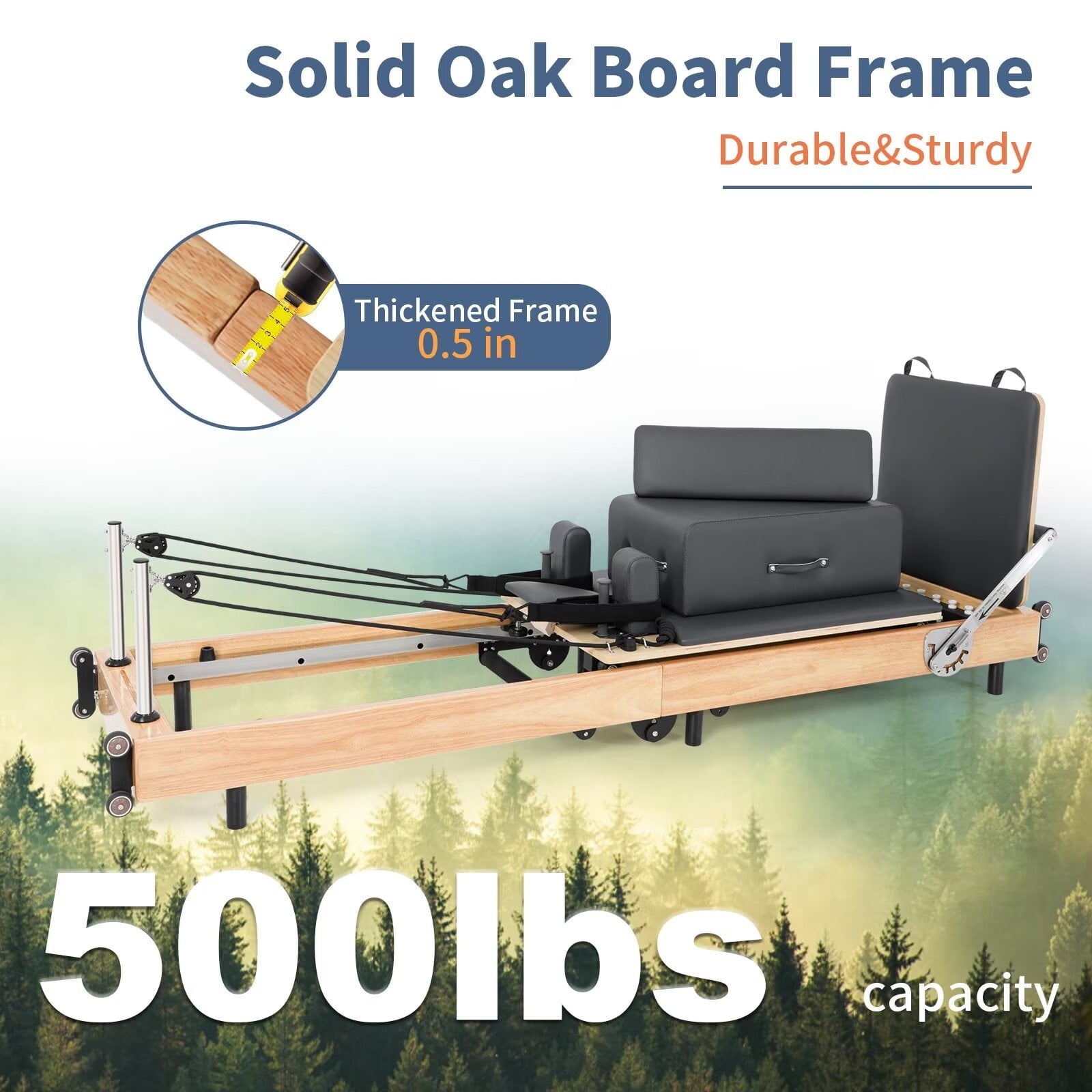 STRONG AND DURABLE PILATES MACHINE: It has a sturdy and durable frame that can hold up to 500 pounds of user weight. The frame is made of high-quality solid oak board through sturdy traditional joint construction.