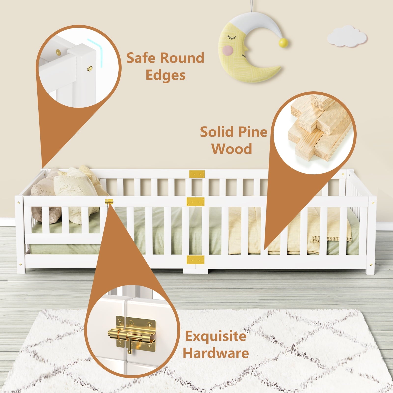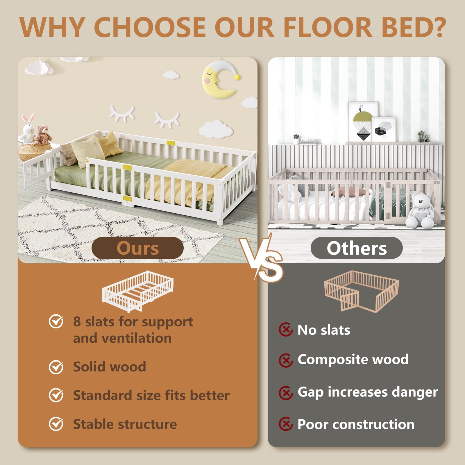 Lilypelle Twin Floor Bed for Kids, Montessori Floor Bed with Guard Rails, Floor Bed Frame for Kids, Boys, Girls