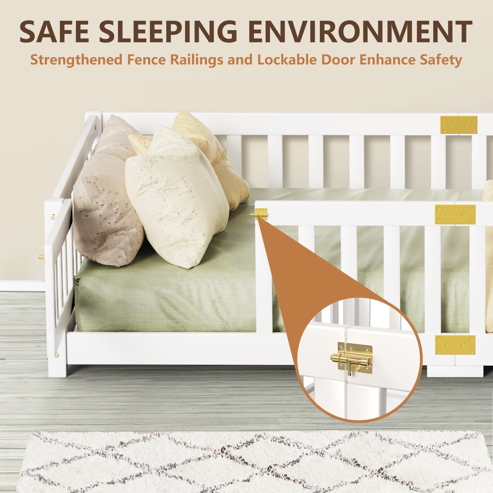 Safety First with Fun Flair:Safety is our top priority. Lilypelle toddler bed features a lockable door and a creative, guardrail fence. This fun door encourages happy and swift bed entries and exits. And when it's not needed, simply remove it for convenience