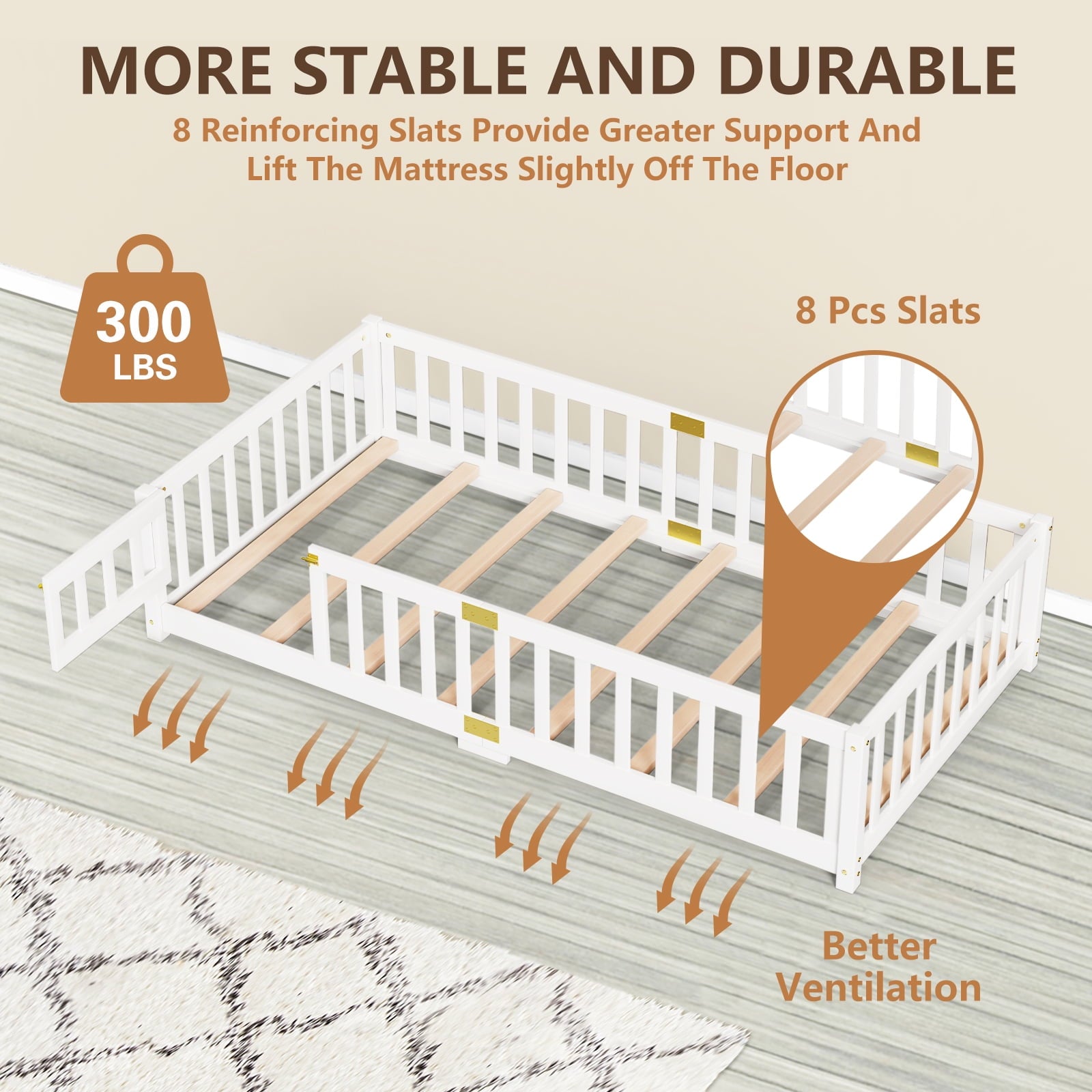 Durability Meets Elegance:Crafted from high-quality pine, our Montessori floor bed promises long-lasting use. The sturdy wooden structure is reinforced for added stability, featuring 8 slats instead of the usual 7 for enhanced durability. It can comfortably support up to 300 pounds