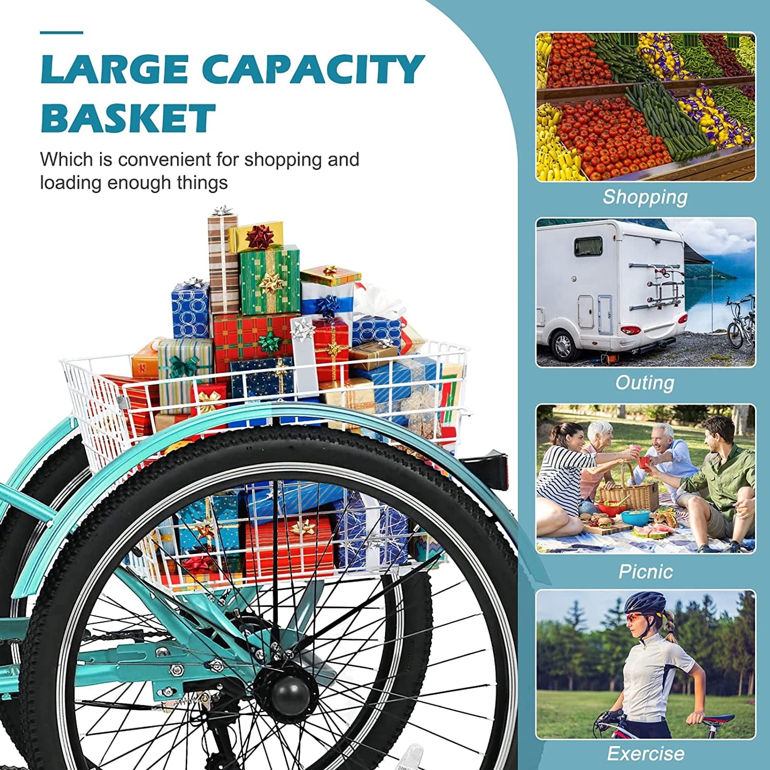 MOONCOOL 24'' Electric Tricycle for Adults, 350W 36V 7 Speeds Electric Trike, 3 Wheels Adult Electric Tricycle Bicycle with Large Basket & Tool Kits,UL2849