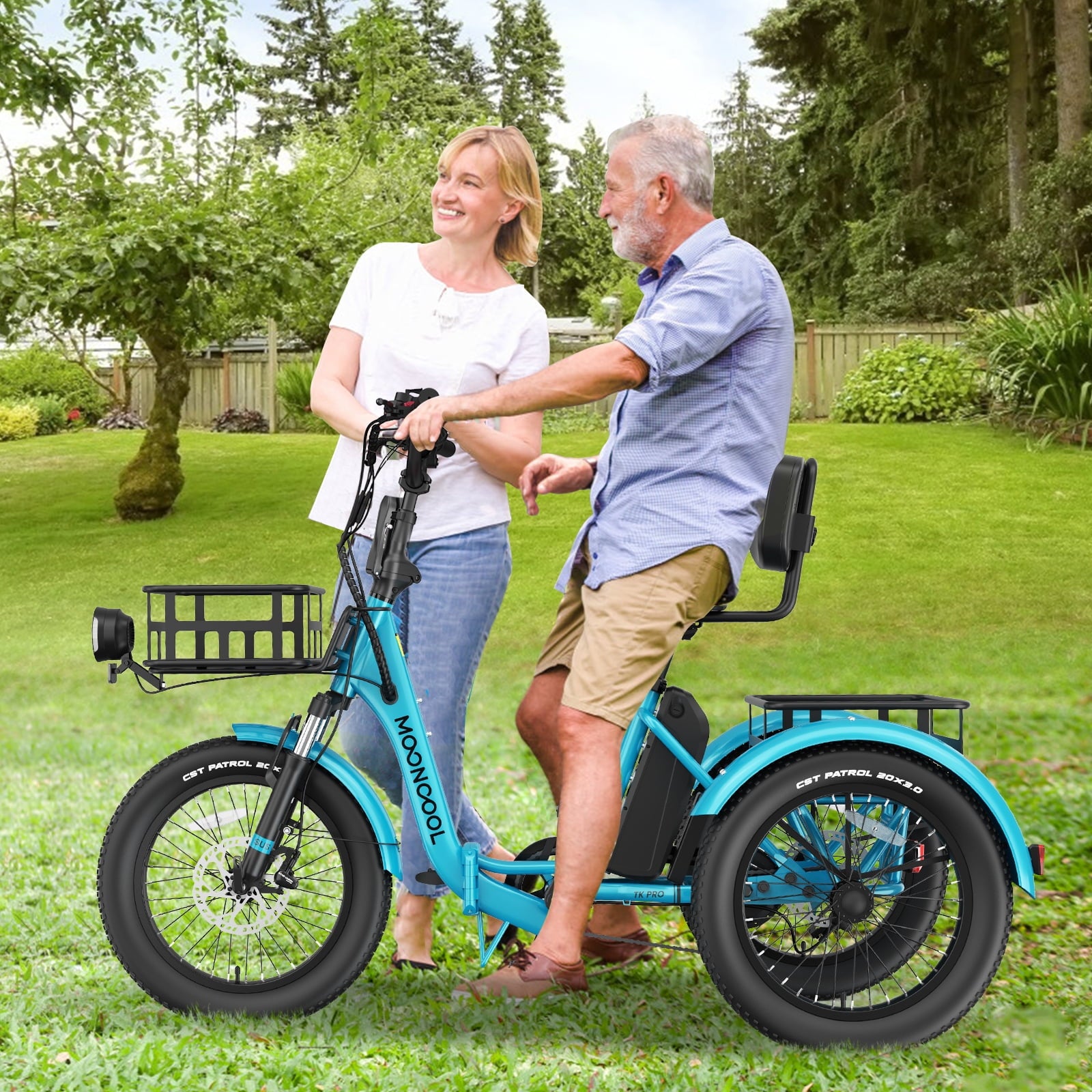 MOONCOOL TK Pro Electric Tricycle for Adults, 750W(Peak 1500W) Motor 48V 20Ah Battery, 20in Fat Tire Three Wheel Electric Bicycle , Foldable Electric Mountain Trike with Front & Rear Basket, UL2849